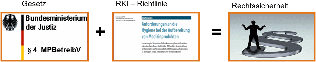 Die gesetzlichen Anforderungen im § 8 Abs. 2 Satz 1 in der Medizinprodukte- Betreiberverordnung (MPBetreibV) konkretisierten „welche Schritte nach einem validierten Verfahren durchzuführen sind, um ein kontaminiertes Instrument so aufzubereiten, dass es entweder rechtssicher gelagert oder erneut am Patienten eingesetzt werden kann, ohne Anwender, Patienten oder Dritte zu gefährden.“