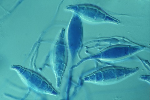 Fadenpilze in einer Größe von wenigen Nanometern, ähnlich wie Viren (30-50nm). Zur Verdeutlichung 1 Nanometer ist der millionste Teil eines Millimeters.